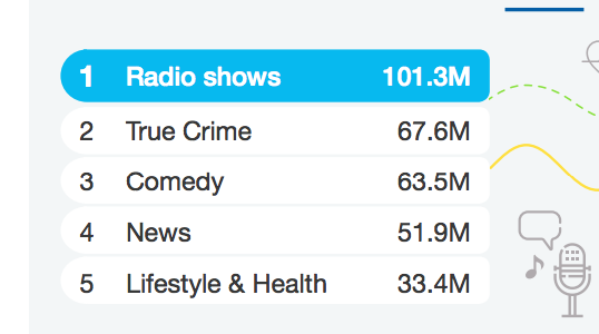 “广播节目播客是2020年最活跃的类别,下载量达到1.013亿次。这并不奇怪,因为它反映了广播在疫情期间的强烈流行,也反映了这些节目已经拥有的观众群。”