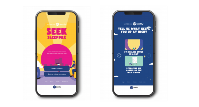 “我们看到在Spotify上的观众流媒体专门为帮助他们睡眠或放松身心。实际上,当我们将在澳大利亚搜索的最高时刻看时,我们将“冷静”和“睡眠”视为前两个搜索词。Seek SleepMix提供了个性化的聆听体验,该体验是根据个人的音乐品味和需求定制的。借助Spotify访问独特的观众见解,驱动成果和广告系列衡量标准,我们知道Seek SleepMix广告系列是我们与品牌合作的绝佳机会,并展示了与平台上的合作伙伴关系的可能性,” Battaglene说。