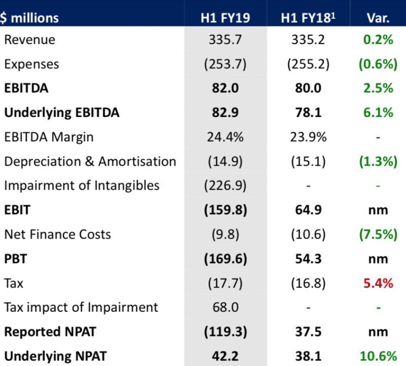 六个月到2018年底,SCA报告收入上涨0.2%至335.7米,EBITDA上涨2.5%至82.0米。本集团报告税后净亏损119.3米的税后,返回226.3亿美元,编写其区域电视网络。