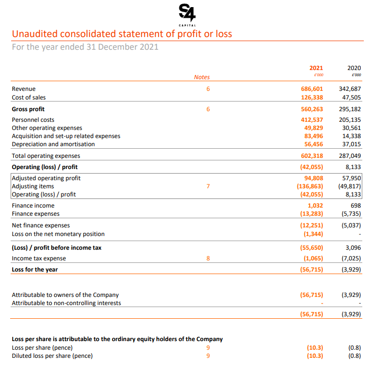 尽管推迟了上市,但S4 Capital 2021年的业绩是健康的。销售额增长至13亿英镑(22亿澳元),同比增长99.4%,同比增长66.8%。