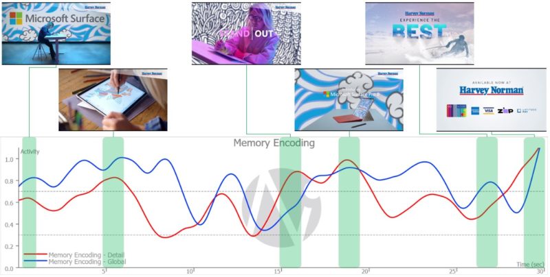 根据神经洞察公司的说法,哈维·诺曼的获奖作品包括品牌书立、横幅、产品演示和“时尚”的信息,这些都促进了长期记忆编码。这则广告在第27秒左右达到了“神经峰值”,在这里,一个滑雪运动员的文字“体验最好的:”在关键的品牌框架之前被战略性地定位了。神经洞察公司称赞哈维·诺曼“在奥运项目背景下巧妙地使用启动效应”,认为这一策略在关键的品牌推广时刻促进了记忆编码,最终使广告广告位列榜首。