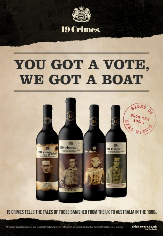 上周在英国大选之前,19次犯罪 - 澳大利亚葡萄酒标签突出了澳大利亚囚犯的故事 - 与报纸上出现的挑衅性广告加入了Brexit对话。