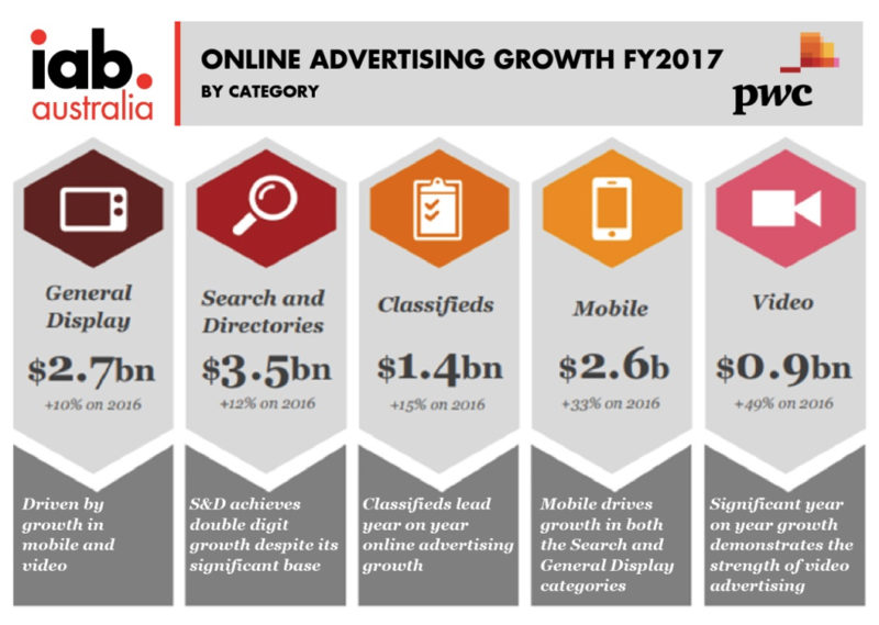 澳大利亚IAB在其《2017年在线广告支出报告》中称,在线广告目前占澳大利亚所有广告支出的近50%。