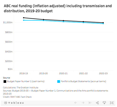 工资成本的增加和戏剧的生产意味着ABC的资金还需要增加“真实意义”(包括通货膨胀的考虑) - 事实检查单位增加了。“因此,预算可以并且应该被称为削减。”