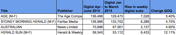 《太阳先驱报》发布了最高的季度数字潜艇增长,增加了12.11%的订阅- 6433人- 59545从4月到6月,随着AFL季节进入全面展开。