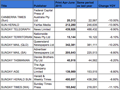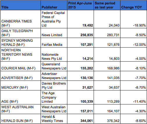 其次是费尔法克斯的悉尼先驱晨报》公布了107291份的印刷版发行量的4月至6月期间,一个比去年同期下降12%。