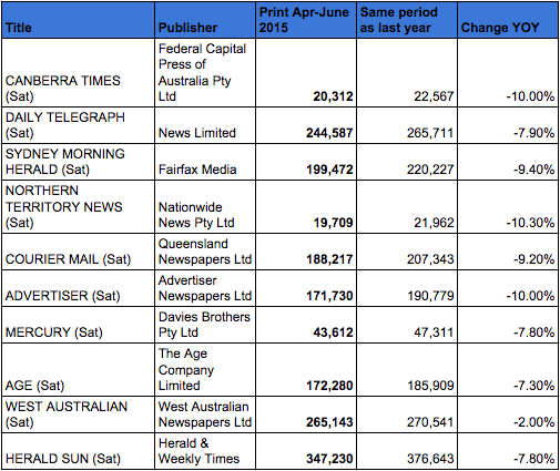 然而,在周六的报纸北领地发布印刷版发行量下降的最大降幅从21962年开始,到19709年,10.3%的下降。
