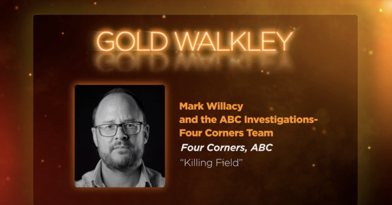 马克·威拉西和美国广播公司调查-四角小组因长达六个月的调查“杀戮场”获得了澳大利亚新闻界的最高荣誉——金沃克利奖。
