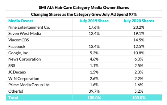 SMI还指出,零售行业的复苏仅为3.8%,而且化学家、超市和户外/花园零售商都增加了对媒体的投资。洗漱用品和化妆品的广告费增加了20.7%,护发用品(属于这一类)的广告费几乎翻了一番。