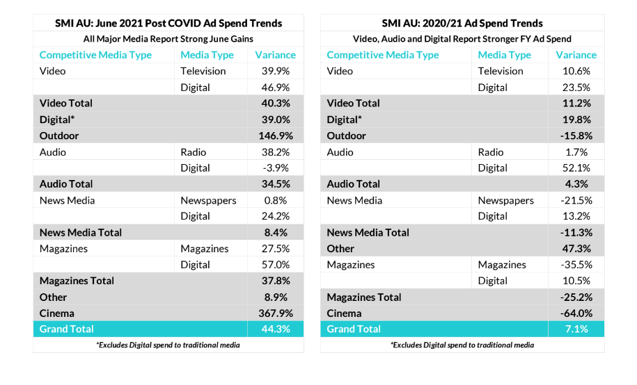 SMI AU/NZ董事总经理简·拉特利夫(Jane Ractliffe)表示,这些数据表明广告业的复苏是可持续的。“在市场仍处于复苏模式的情况下,能实现如此高的广告支出水平,简直是一项令人难以置信的成就。一年前,谁会想到这是可能的呢?