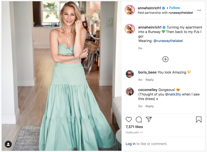 尽管失控的标签没有与广告标准引入的标签,但是Heinrich的Instagram帖子用于失控的标签由于图像的质量和衣服的清晰显示而统治着一个广告,这将引起人们对品牌的关注。Referring to the practice note in Section 2.7 of the AANA Code of Ethics, which outlines the appropriate hashtags and disclosures to be used in paid content, the panel ruled simply tagging Runaway The Label’s account was not sufficient for the majority of the public to recognise the post as advertising material, and subsequently upheld the complaint.