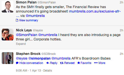 m雨伞的团队很高兴看到我们的许多读者在我们的A《澳洲金融评论报》要搬大报恶作剧了(特别感谢AFR的人,他们是如此优秀的运动员)。