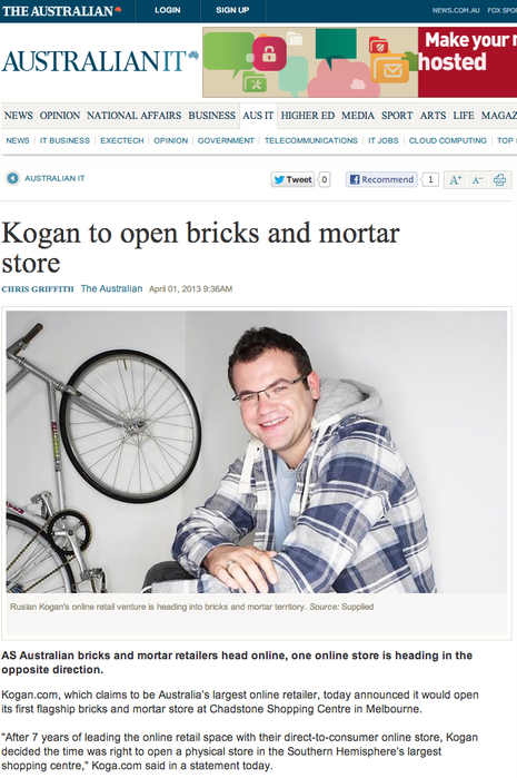 事实上,《澳大利亚人》(The Australian)的参与程度超出了它的预期,它被在线零售商高根(Kogan)搞了个恶作剧,高根宣布它的第一家实体零售店将由艾伦(Ellen)、瑞恩•高斯林(Ryan Gosling)和瑞奇•马丁(Ricky Martin)开设。这只出错了澳大利亚的IT部分该公司发表了这篇文章,署名为克里斯·格里菲斯(Chris Griffith),后来又把它撤了下来。