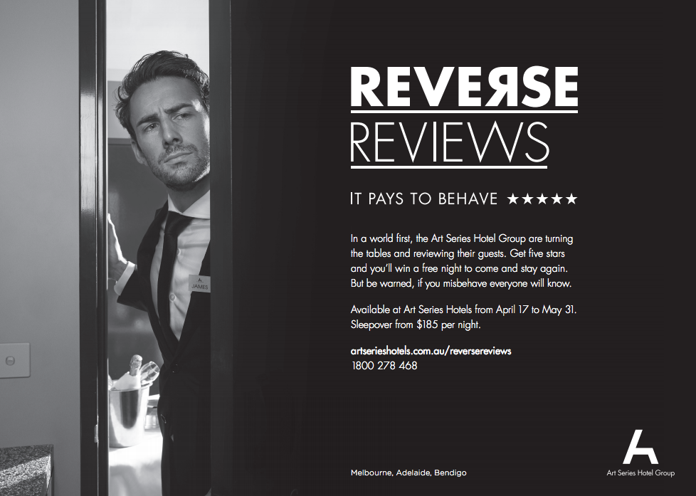 Art Series酒店集团营销总监瑞安·塔克曼说:“仅在Trip Advisor上,酒店和餐厅的评论就超过了4000万,反向评论颠覆了这一过程,为我们提供了一种以有趣和轻松的方式识别和奖励良好行为的方式。”