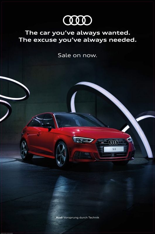 在BMF发起的一项新的全国零售活动中,奥迪是“你一直想要的车,你一直需要的借口”,这是该品牌一个月内的第三次活动。