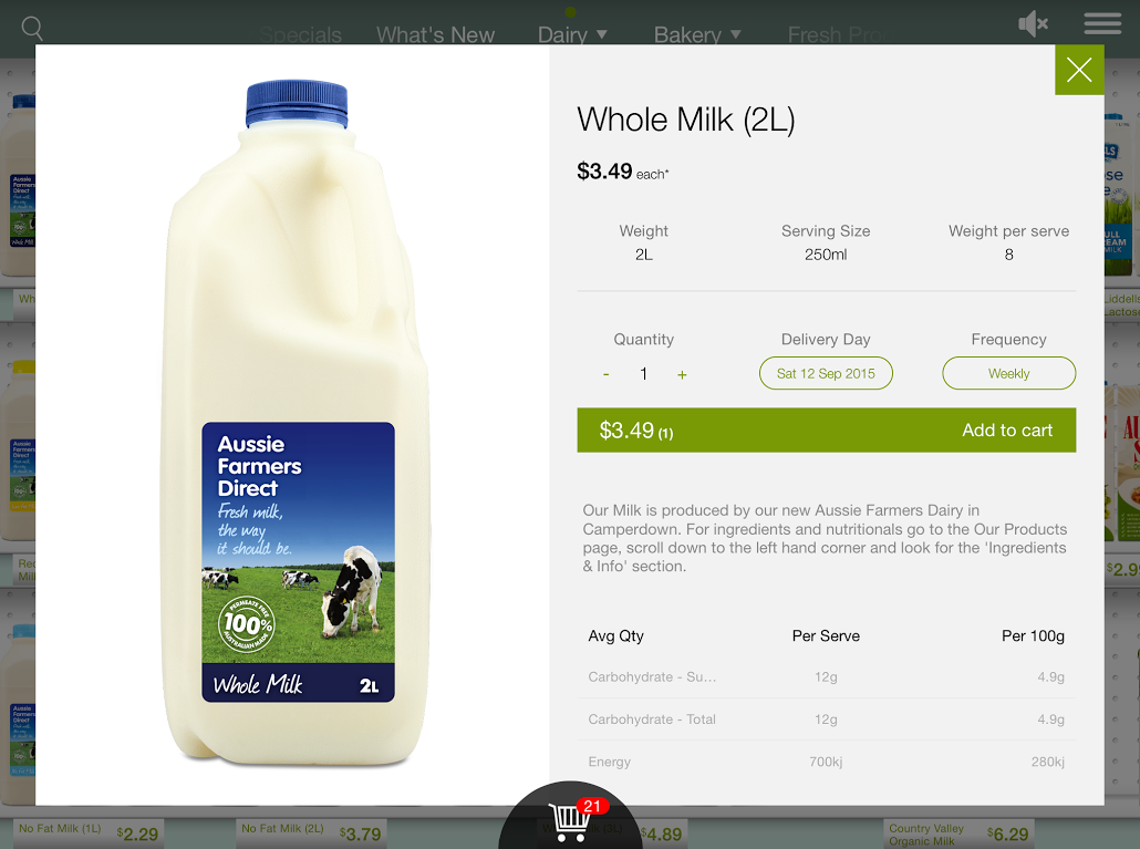 AisleOne在虚拟商店中展示澳大利亚农民直销产品系列,并让客户通过三个简单步骤进行购物: