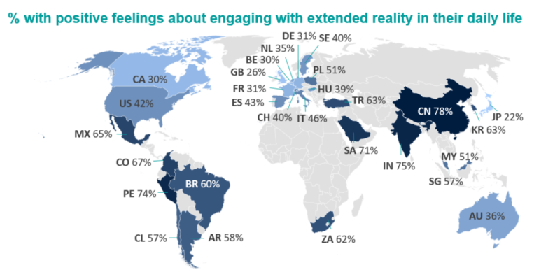 IPSOS澳大利亚总监David Elliott说:“这项最新的全球调查结果表明,澳大利亚在我们对扩展现实及其对事件的熟悉方面远远落后于全球许多国家。”