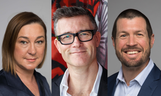 左起:《卫报》澳大利亚版编辑Lenore Taylor;Pollinate的首席执行官Howard parry - husband;以及嘉德澳大利亚董事总经理丹·斯廷顿(Dan Stinton)