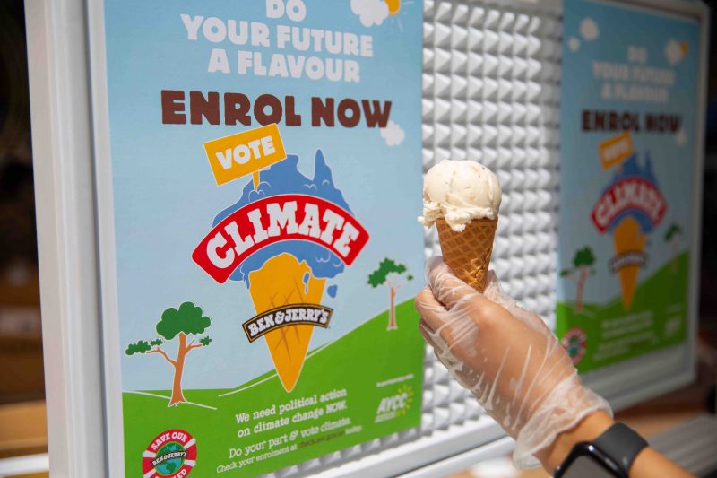 Ben & Jerry ' s与澳大利亚青年气候联盟合作,鼓励年轻人登记投票的资格。