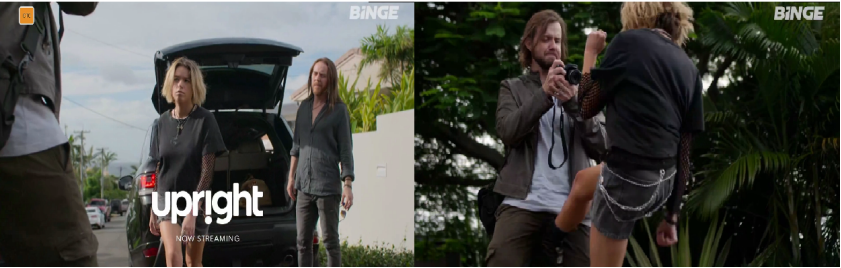 这则30秒的广告是Binge在Thinkerbell的“Summer Range”活动的一部分,它是由电视剧《直立行走》(直立行走)中各种场景的蒙太奇剪辑而成,每个场景上都叠加了短信泡泡。投诉的中心场景是一名女子踢了一名男子的睾丸。