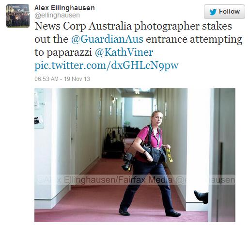 高度的一个例子是在印尼间谍丑闻当新闻集团(News Corp)摄影师在堪培拉媒体《卫报》局外安营扎寨画廊试图拍摄她在走廊的议会。