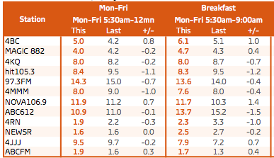 2015年的第二次广播收视率调查也显示,陷入困境的AM谈话电台4BC的观众份额上升了0.8个百分点,达到5.0,这是之前的最后一次调查火车站大变动的影响这将会看到它得到很多它的早餐和早晨内容来自悉尼.
