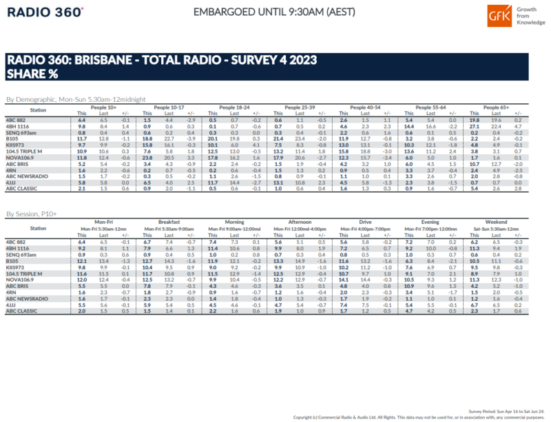 布里斯班电台评级:至关重要的早餐比赛升温与激烈的竞争对手B105和新星不相上下