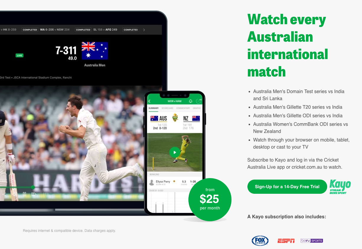 与前几年cricket.com.au直接向消费者出售自己的订阅服务(每年30美元)不同,那些想在澳大利亚板球应用程序上观看直播比赛的人需要订阅福克斯体育的流媒体服务Kayo,他们可以通过应用程序以每月25美元的价格获得该服务。Kayo于11月底正式推出,在繁忙的12月板球比赛之前。因此,布拉德肖和他的团队与福克斯体育密切合作,帮助提高订阅量。
