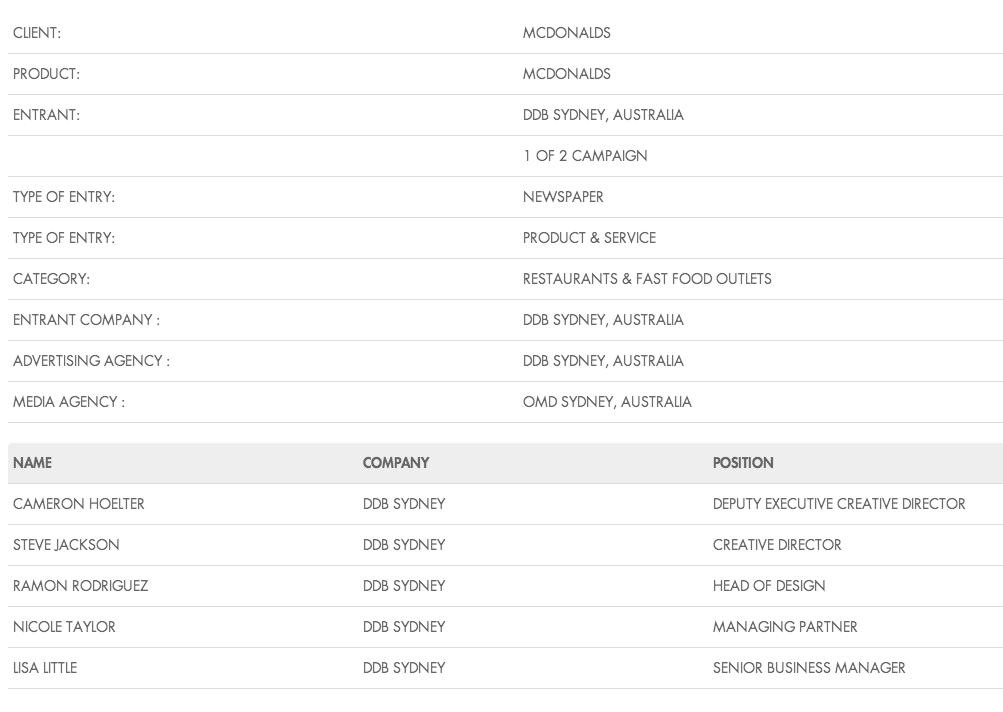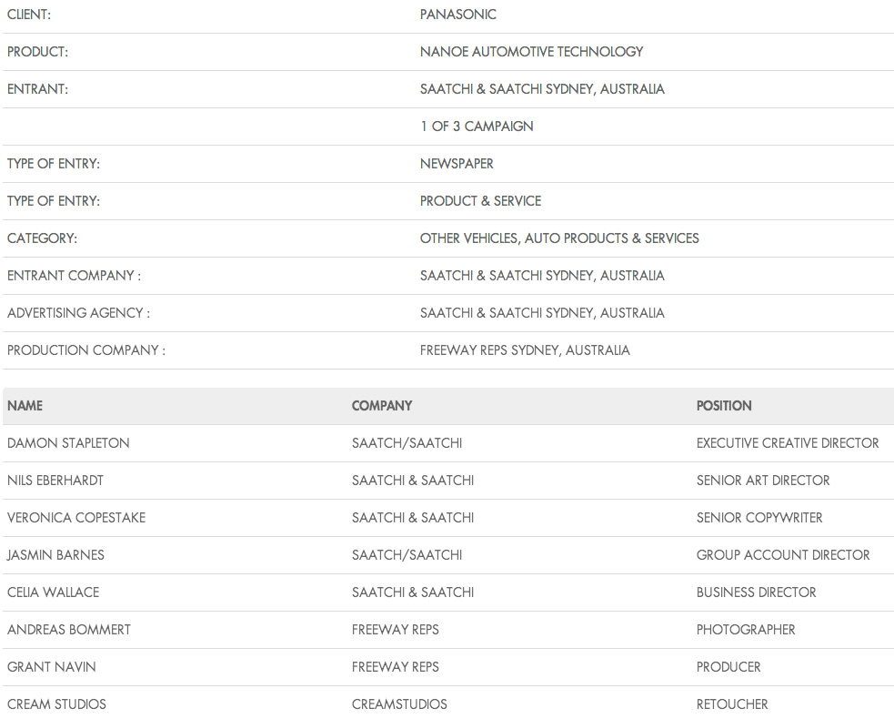 (有趣的是,但巧合的是,副总监达蒙·斯台普顿(Damon Stapleton)本人就是狮报奖评审团的澳大利亚代表。)