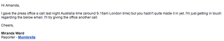 但奇怪的是,他们并没有承认我们的问题,更别说回答了。在所有。我的同事米兰达一直在给你们的公关和媒体经理阿曼达·本菲尔发邮件。(我以前和阿曼达打过交道,她工作很出色。)