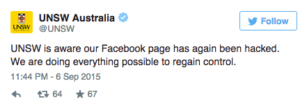 UNSW的发言人告诉Mumbrella:“昨晚有第二次安全违反UNSW的Facebook页面。