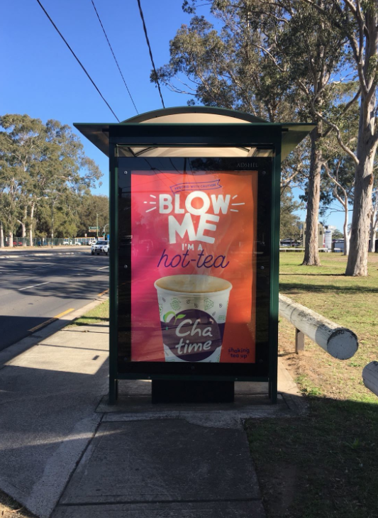 奶茶特许经营品牌Chatime推出了一系列新的户外广告,标语是“吹我吧,我是一杯热茶”。
