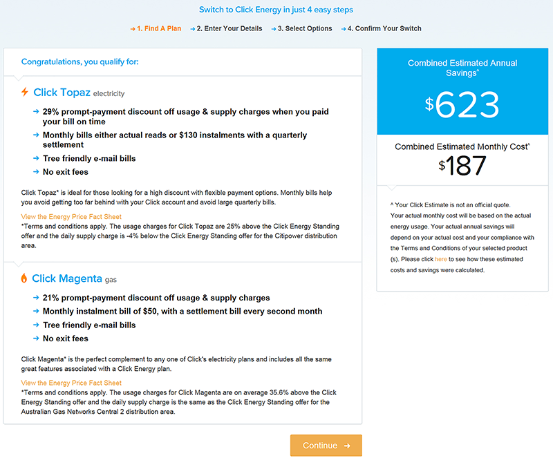 在最新的情况下,ACCC所谓2017年10月至2018年3月,点击能源告诉消费者,他们可以得到7 - 29%的折扣在其市场能源提供了如果他们支付他们的账单。