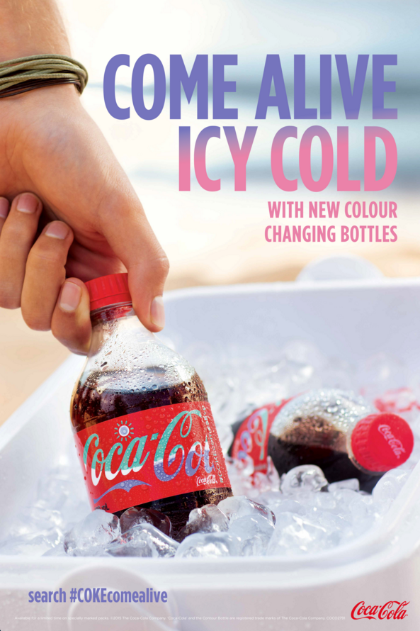 可口可乐将以另一项创新开启夏季营销活动——温度敏感变色标签,继续打造“活力四射”的主题。