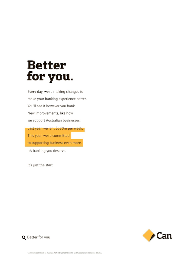 Commbank成为第一大银行自皇家委员会发布平面广告