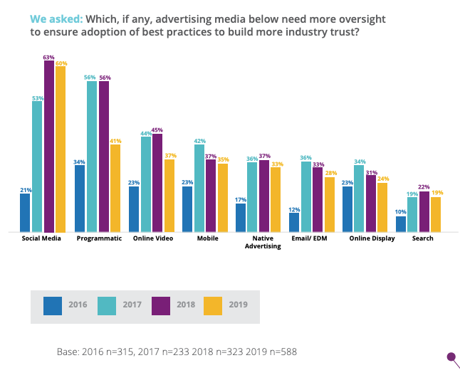Ryan说:“程序化广告正在走向成熟,ads.txt等创新正在建立人们的信心,但随着程序化广告在电视和家庭以外等线上渠道的发展,人们担心需要更多的监管。”