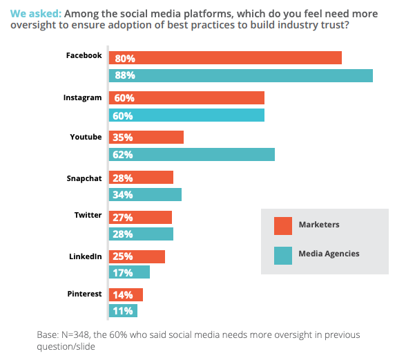67%的营销人员认为这两者是他们最关心的问题,而72%的机构受访者回答了同样的问题。社交媒体是应答者认为最需要帮助建立信任的渠道。