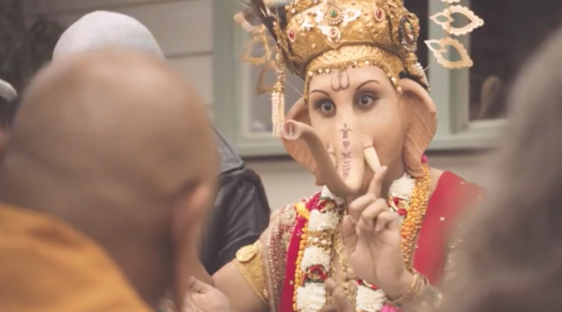 它认为对甘尼萨的描绘是印度教信仰的“象征”,他的加入是包容性“多信仰餐”的信息的一部分。