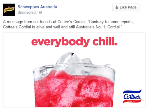 Cottee的cordials回击了有关该公司准备关闭大门的报道,并发起了一场新的广告宣传活动,宣称该品牌及其产品将继续存在。