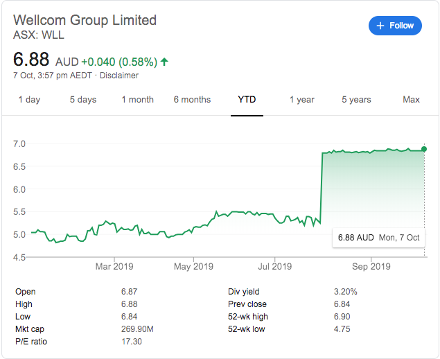 如果经过,股东将获得每股6.70美元的现金考虑。目前,Wellcom的交易价格为6.88美元,非常接近其52周高点6.90美元。