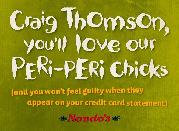 信用再次必须前往Nando的澳大利亚,以其对前MP的战术推特响应克雷格汤姆森对信用卡欺诈的判刑,其中包括来自妓女的票据。