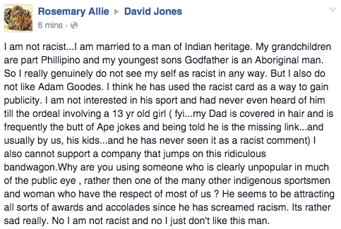 有元素的澳大利亚社会认为土著居民应该安静地继续痛苦,很少见到,当然不会听到。当一个骄傲的土著男人胆敢站出来指出种族主义的虚伪,他诋毁。这是一个可耻的插曲,AFL没有战斗,所以它就好像一些如何合法的声音。我祝贺大卫琼斯选择一个罕见的原则和勇气的人是他们的大使。