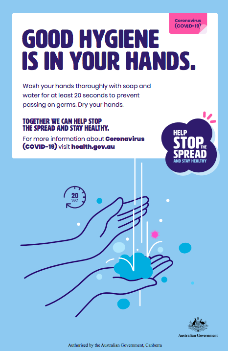 政府第一次针对COVID-19的宣传活动于今年3月开始,由布里斯班机构Carbon creative创意执行。广告的目标是保持良好卫生,境外入境后隔离,保持警惕,阻止病毒传播。