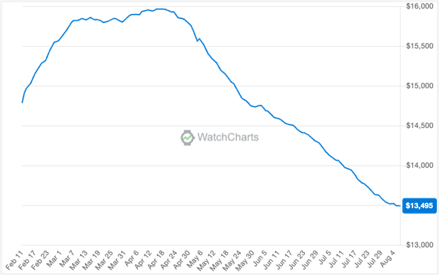 直观上,我们看到读者数量明显下降,比如奢侈品而且房地产市场.Chanel和Michael Kors等品牌的奢侈品的阅读量分别减少了52%和38%。法拉利和玛莎拉蒂等汽车的销量分别下降了16%和64%。房地产价格下跌了12%,像智能手表这样值得拥有的小玩意价格下跌了12%。我们甚至看到人们在阅读关于劳力士的报道,它的价格上涨了396%,因为它的第二市场价格下跌了俯冲.