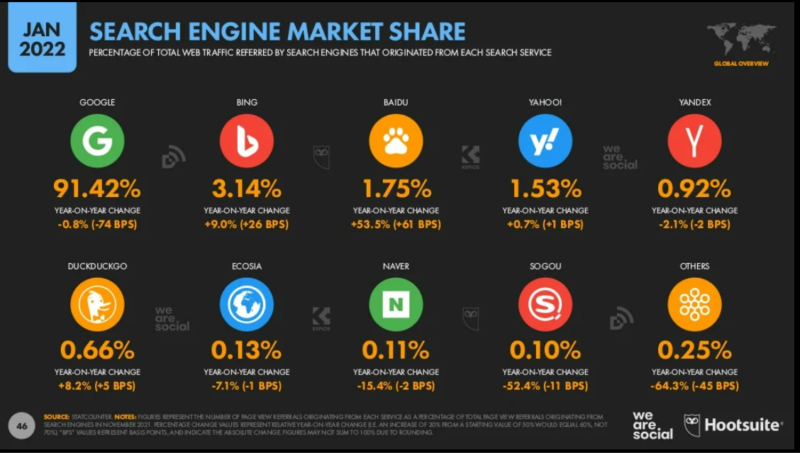 不出所料,谷歌在全球搜索引擎市场份额,与网络流量总额的91.42%被称为搜索引擎,虽然数量同比小幅下降0.8%。新闻出现后的批评谷歌在搜索引擎领域的主导地位,ACCC去年10月如。