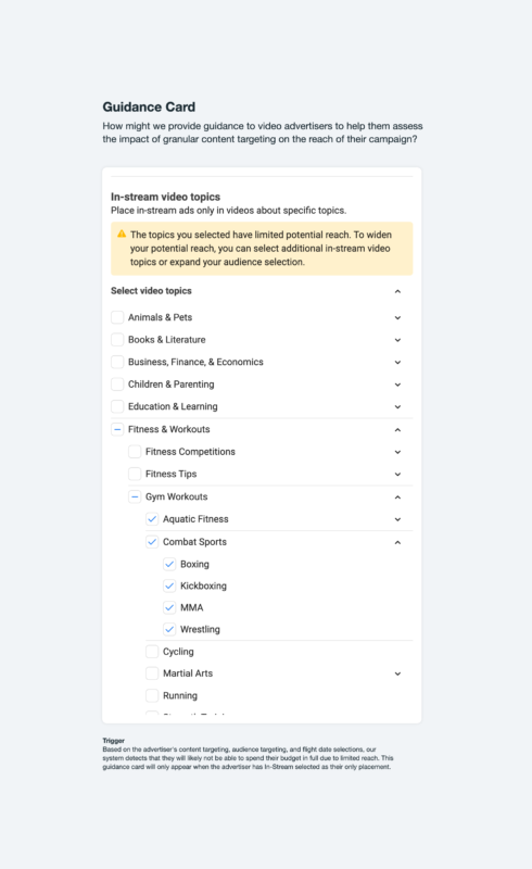 在Facebook上,广告商将能够缩小流式的内容,他们希望广告在广告经理中提供的新选项,提供20多种不同的视频主题。新功能将使品牌与具有机器学习的相关内容相匹配。结果品牌将达到更多从事视频观众。