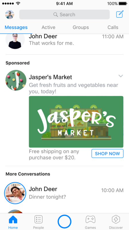 广告将根据用户与应用程序的乐趣,其设备的大小以及他们打开的信使线程的大小而有所不同。