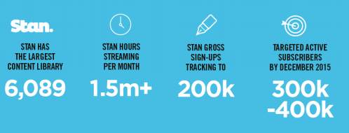 这一更新还显示了其合资视频流媒体服务Stan拥有30万至40万活跃用户的雄心。该公司声称,自1月份推出以来,Stan正在“跟踪”20万用户。