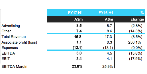 Looking at Fairfax’s Australian Metro Media division – which includes The Sydney Morning Herald, The Age, The Australian Financial Review, Digital Ventures and Life and Events businesses – revenue was down 8.2% from $304.1m to $279.1m, while EBITDA for the segment was down 12.2% from $31.5m to $27.7m.