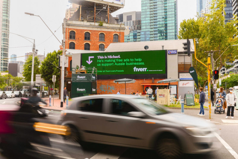 在线市场Fiverr已将自由职业者附加到广告牌,以便通过各种方式在新的广告系列中为当地企业创建广告。